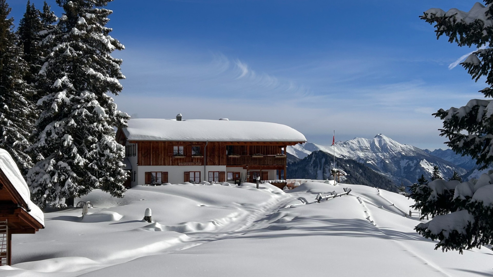 Auch im Winter ist die Ehenbichler Alm zu Fuß, mit Tourenski oder Schneeschuhen gut erreichbar, in ca. 1,5 Stunden Gehzeit ab Rinnen/Rauth.